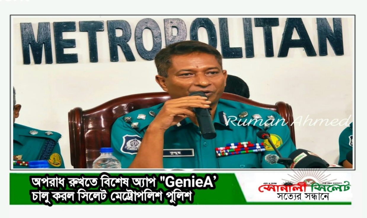 সিলেট মহানগরীতে নাগরিক সেবা আরও দ্রুত ও সহজ করতে সিলেট মেট্রোপলিটন পুলিশ (এসএমপি) চালু করেছে অত্যাধুনিক প্রযুক্তিনির্ভর মোবাইল অ্যাপ ‘GenieA’—যা স্থানীয়ভাবে পরিচিত ‘জিনিয়া অ্যাপ’ ...বিস্তারিত পড়ুন