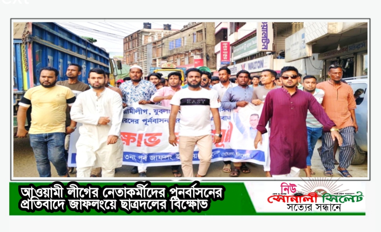 আওয়ামী লীগ ও এর অঙ্গসংগঠনের বিভিন্ন স্তরের নেতাকর্মীদের পূর্ণবাসনের প্রতিবাদে বিক্ষোভ মিছিল ও প্রতিবাদ সভা অনুষ্ঠিত হয়েছে। শুক্রবার বিকেলে পূর্ব জাফলং ইউনিয়ন ছাত্রদলের উদ্যোগে স্থানীয় মামার বাজার থেকে বিক্ষোভ মিছিলটি শুরু করে প্রধান প্রধান সড়ক প্রদক্ষিণ করে পুনরায় মামার বাজার পয়েন্টে এক পথ সভায় মিলিত হয়।