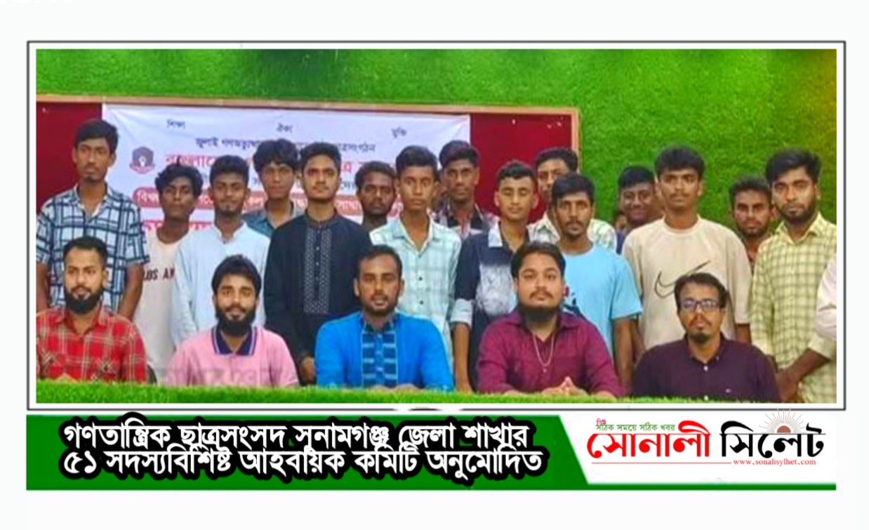 মঙ্গলবার (১লা জুলাই) বাংলাদেশ গণতান্ত্রিক ছাত্রসংসদের কেন্দ্রীয় কমিটির আহবায়ক আবু বাকের মজুমদার ও সদস্যসচিব জাহিদ আহসান আগামী এক বছরের জন্য এই কমিটির অনুমোদন দেন। বাংলাদেশ গণতান্ত্রিক ছাত্রসংসদের কেন্দ্রীয় কমিটির মুখ্য সংগঠক তাহমীদ আল মুদ্দাসসীর চৌধুরীর লিখিত সুপারিশক্রমে এই কমিটিকে আনুষ্ঠানিকভাবে অনুমোদন প্রদান করে কেন্দ্রীয় কমিটি। সুনামগঞ্জে এ গ্রেডের জুলাই যোদ্ধা মোঃ জহুর আলী বলেন,দীর্ঘ এক বছরের ধারাবাহিক আন্দোলন,ত্যাগ ও সংগ্রামের ফলে প্রতিভাবান ছাত্রনেতা এনডি উছমান গনি তার সহকর্মীদের পুরো টীম নিয়ে আনুষ্ঠানিকভাবে বাংলাদেশ গণতান্ত্রিক ছাত্রসংসদ সুনামগঞ্জ জেলা শাখার ৫১ সদস্যবিশিষ্ট আহবায়ক কমিটির অনুমোদন লাভ করেছেন।