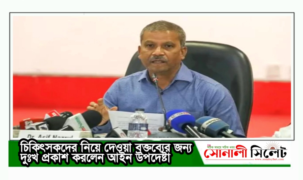 চিকিৎসকদের নিয়ে দেওয়া বক্তব্যের জন্য দুঃখ প্রকাশ করেছেন অন্তর্বর্তী সরকারের আইন উপদেষ্টা ড. আসিফ নজরুল।