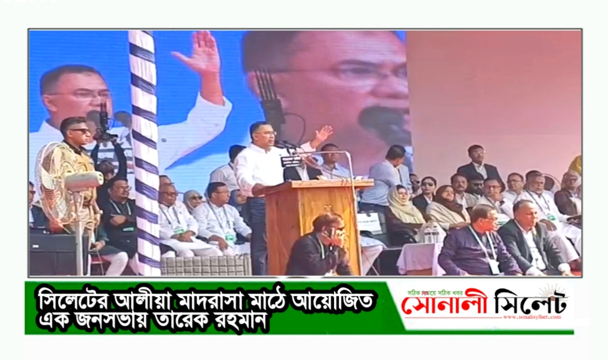 সিলেটের আলীয়া মাদরাসা মাঠে আয়োজিত এক জনসভায় তারেক রহমান