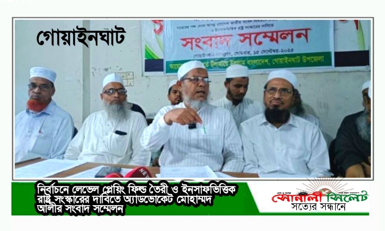 আসন্ন ত্রয়োদশ জাতীয় সংসদ নির্বাচনে সিলেট-৪ (গোয়াইনঘাট, কোম্পানীগঞ্জ ও জৈন্তাপুর) আসনে জমিয়তে উলামায়ে ইসলাম বাংলাদেশ মনোনীত সংসদ সদস্য পদপ্রার্থী আলহাজ্ব অ্যাডভোকেট মোহাম্মদ আলীর পক্ষ থেকে ত্রয়োদশ জাতীয় সংসদ নির্বাচনে