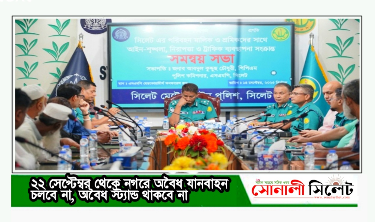 ২২ সেপ্টেম্বর হতে নগরীতে কোন অবৈধ যানবাহন চলাচল করবে না, অবৈধ স্ট্যান্ড থাকবে না বলে জানিয়েছেন সিলেট মহানগর পুলিশ (এসএমপি) কমিশনার আবদুল কুদ্দুছ চৌধুরী। মঙ্গলবার দুপুরে মহানগর পুলিশ সদর