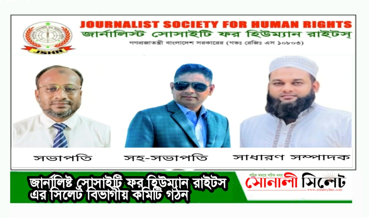 জার্নালিষ্ট সোসাইটি ফর হিউম্যান রাইটস এর সিলেট বিভাগীয় কমিটি গঠন হয়েছে। গত শনিবার (১৮ অক্টোবর) কেন্দ্রীয় কমিটির চেয়ারম্যান এ্যাডভোকেট মোহাম্মদ মনির হোসেন সিলেট বিভাগীয় কমিটির অনুমোদন প্রদান করেন। ২১